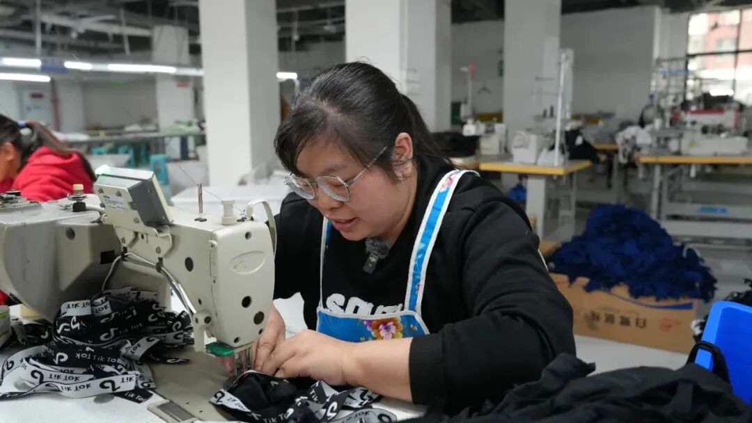 而这份获得感,除了社区的贴心服务,更来自“家门口”那份稳稳的幸福。走进敬贤社区的贵州安然服饰有限公司生产车间,缝纫机“哒哒”声此起彼伏,20余名工人正熟练地赶制发往欧美、非洲的服装订单。